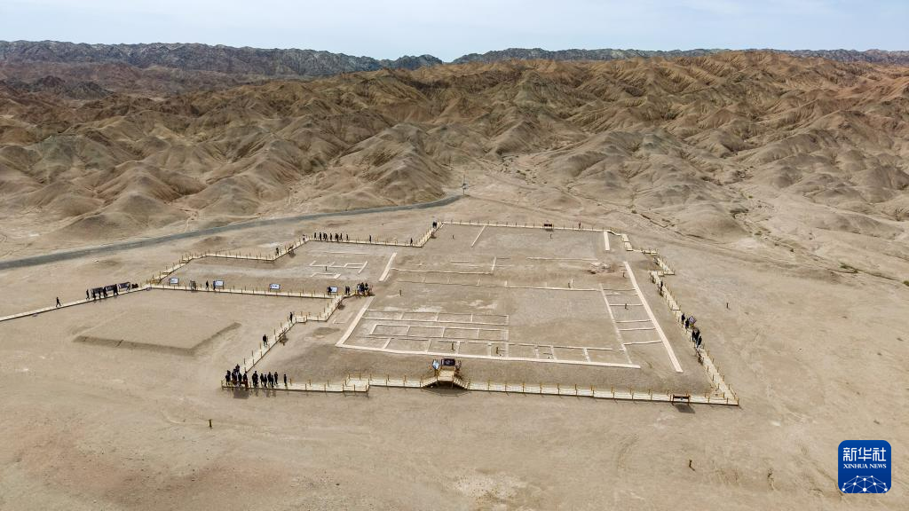4月29日,嘉宾在世界文化遗产悬泉置遗址参观(无人机照片)。新华社记者 郎兵兵 摄