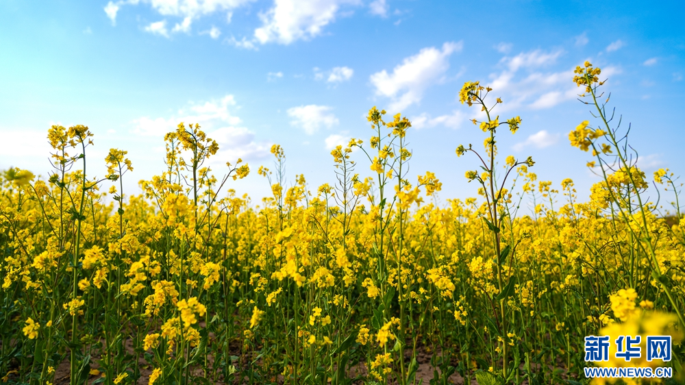 【大美甘肃】甘肃庄浪:千亩油菜鎏金染春光-新华网