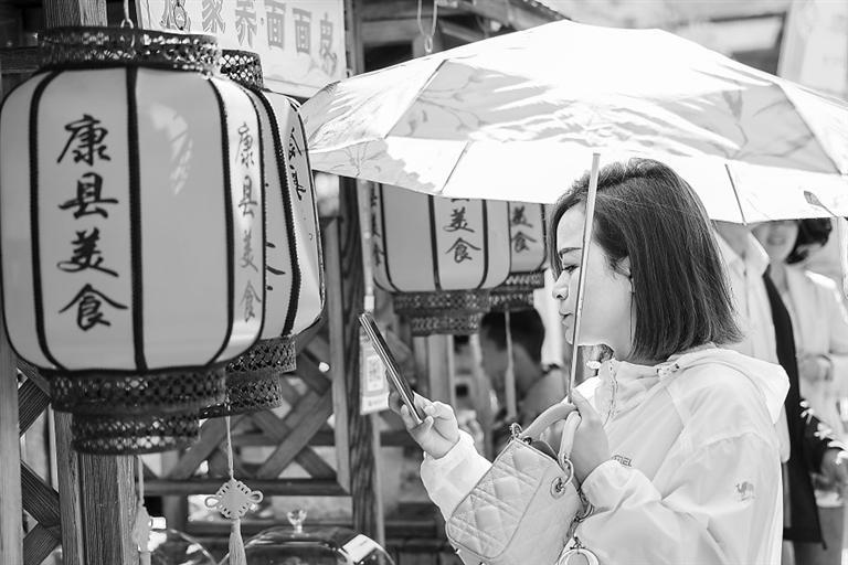 游客在康县青龙山旅游度假区购物。新甘肃·甘肃日报通讯员 黄培军