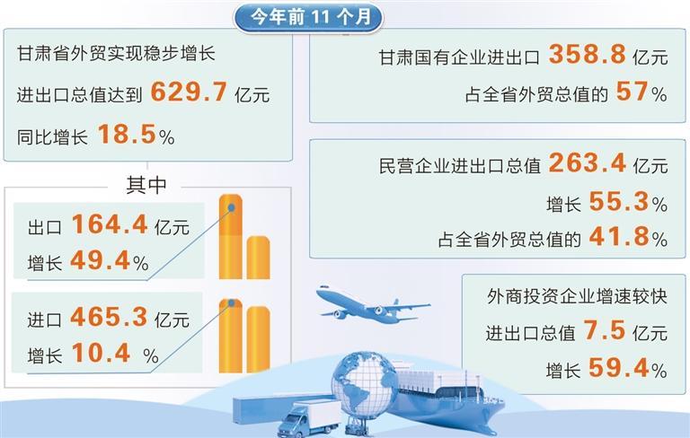 原标题:【强信心 看发展】前11个月甘肃外贸进出口总值达到629.7亿元